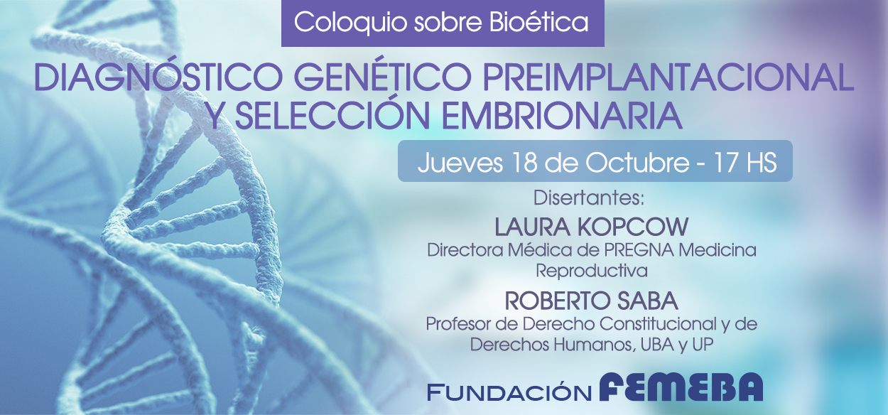 Actividad dirigida al público en general y a las comunidades médicas y jurídica en particular, para informar, reflexionar y debatir sobre los problemas científicos, éticos y legales del diagnóstico genético y la selección de los embriones humanos a ser transferidos en las técnicas de reproducción médicamente asistida.
