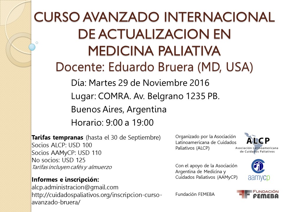Durante los días 27, 28 y 29 de mayo se llevó a cabo el taller de Cuidado Paliativo de grado de medicina en Argentina en la sede de Fundación FEMEBA. El taller contó con 29 participantes en representación de 18 escuelas de medicina de 18 universidades del país. El primer día de trabajo después de una introducción general de Cuidado Paliativo en el contexto global y regional, y de la importancia de la educación durante el grado, los participantes fueron distribuidos en grupos y se les solicitó discutir y definir las competencias de Cuidado Paliativo para grado. Los participantes analizaron diferentes temas y consensuaron las recomendaciones emergentes que resultaron en las competencias divididas en 10 categorías (en orden alfabético):