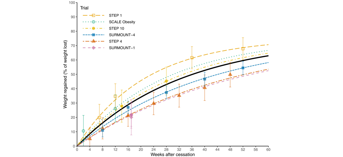Trayectoria de recuperación de peso tras la interrupción de los agonistas del receptor GLP-1: una revisión sistemática y metarregresión no lineal