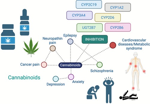 Esta revisión exhaustiva tiene como objetivo analizar críticamente las principales interacciones farmacocinéticas de los principales cannabinoides (tetrahidrocannabinol, cannabidiol, cannabinol, cannabicromeno y cannabigerol) en relación con los fármacos prescritos para el dolor neuropático, la depresión, la ansiedad, la esquizofrenia, la epilepsia y el cáncer, así como con los tratamientos más comunes para enfermedades cardiometabólicas, como las estatinas, los betabloqueantes, la warfarina, los análogos de insulina y la metformina. Br J Clin Pharmacol. 3 de febrero de 2026