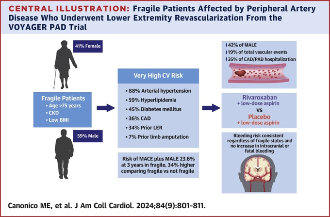 Dosis bajas de rivaroxabán más aspirina en pacientes frágiles tras revascularización de miembros inferiores