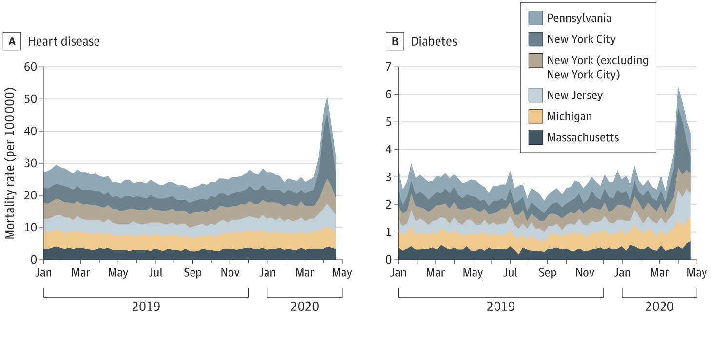 Mortalidad en los EEUU durante las primeras semanas de la pandemia