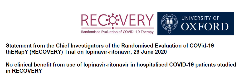 Declaración de los investigadores principales de la evaluación aleatorizada de COVid-19 thERapY (RECOVERY)Ensayo sobre lopinavir-ritonavir, 29 de junio de 2020