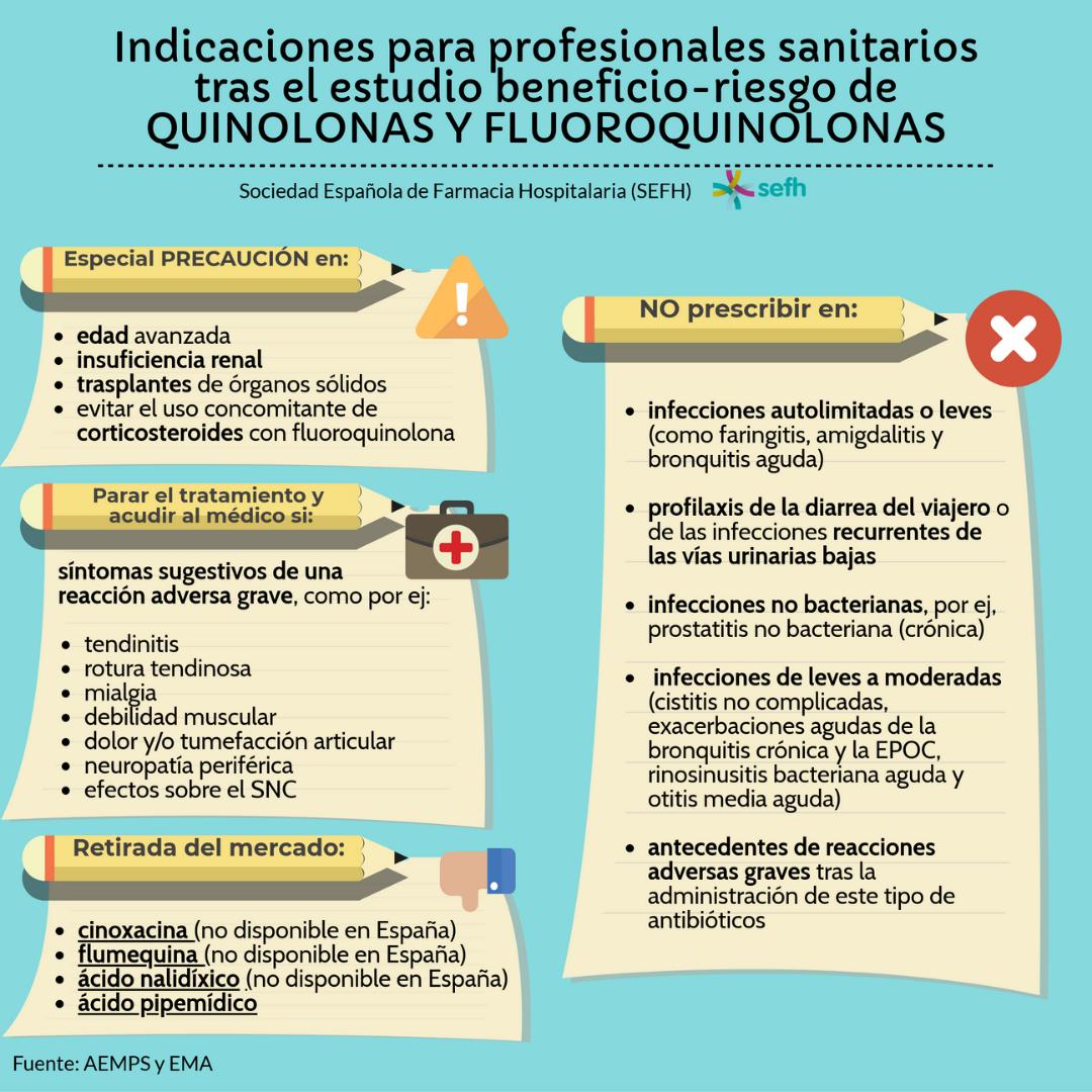 Quinolonas y fluoroquinolonas de uso sistémico: riesgo de reacciones adversas incapacitantes, de duración prolongada y potencialmente irreversibles y restricciones de uso