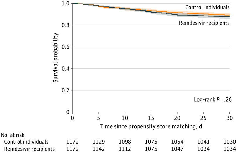 En este estudio de cohorte de veteranos estadounidenses hospitalizados con COVID-19, el tratamiento con remdesivir no se asoció con una mejor supervivencia, pero sí con estadías hospitalarias más prolongadas. El uso rutinario de remdesivir puede estar asociado con un mayor uso de camas de hospital, pero no con mejoras en la supervivencia. JAMA Netw Open. 15 de julio de 2021