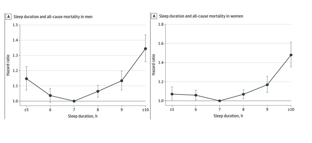 Un estudio de cohortes con más de 300.000 participantes seguidos durante 15 años encuentra una relación con forma de “J” entre la duración del sueño y la mortalidad general y cardiovascular, con un valor mínimo para aquellos que duermen 7 horas diarias. JAMA Network Open, 3 de septiembre de 2021.