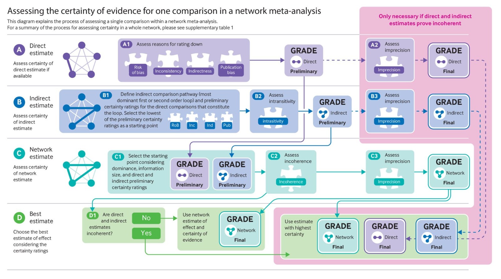 Una guía y consideraciones pragmáticas para aplicar GRADE al metanálisis en red