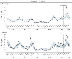 Aunque los niveles de actividad del virus respiratorio alcanzaron niveles sin precedentes durante la escasez, los errores de dosificación parecieron superar los aumentos que se esperaban en función de la estacionalidad y la actividad viral. Las posibles explicaciones para el exceso observado en los errores de dosificación no intencionales para antipiréticos y analgésicos incluyen a los padres y cuidadores de niños pequeños que dividen erróneamente las píldoras destinadas a adultos, obtienen medicamentos de otros países con instrucciones de dosificación desconocidas o tienen poca alfabetización en salud o dominio limitado del inglés. N Engl J Med, 1 de junio de 2023