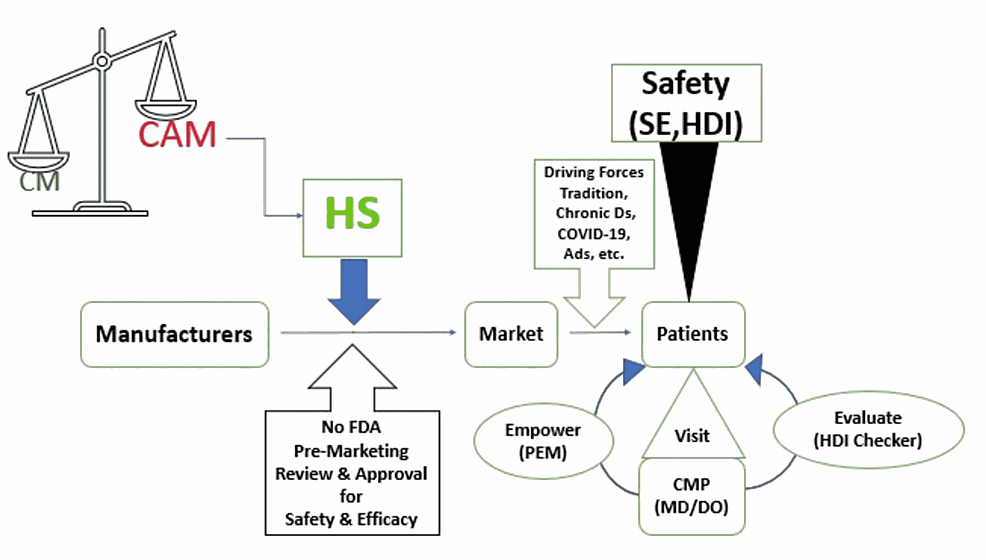 Los suplementos a base de hierbas son enfoques comunes de medicina alternativa y complementaria (CAM) con una tendencia de uso cada vez mayor en las últimas dos décadas entre la población de EE. UU. La automedicación con suplementos de hierbas que se promueven para el bienestar general, la pérdida de peso, la inmunidad y el refuerzo de la memoria, y las afirmaciones de salud mental y física son muy frecuentes. Existe la percepción errónea de que los suplementos herbales son inofensivos ya que se preparan a partir de fuentes naturales. A diferencia de los medicamentos convencionales, la Administración de Alimentos y Medicamentos (FDA, por sus siglas en inglés) de los EE. UU., no regula la pureza y la potencia de los suplementos a base de hierbas antes de su comercialización. Por lo tanto, existe una creciente preocupación por los riesgos para la salud debido a ingredientes tóxicos mal etiquetados, contaminantes, adulterantes e interacciones entre hierbas y medicamentos con medicamentos coadministrados. El espectro de efectos farmacológicos y toxicológicos de los suplementos a base de hierbas incluye resultados de laboratorio trastornados, reacciones alérgicas, genotoxicidad, carcinogenicidad, teratogenicidad, daño a órganos e incluso fatalidades que contribuyen a visitas de emergencia y hospitalizaciones considerables en los EE. UU. El uso de suplementos a base de hierbas debe controlarse cuidadosamente en grupos de alto riesgo, como poblaciones pediátricas y geriátricas, mujeres embarazadas, madres lactantes, pacientes inmunocomprometidos y candidatos quirúrgicos. Los efectos nocivos para la salud de los suplementos a base de hierbas se abordan vagamente en la práctica médica convencional, en parte debido al conocimiento limitado de los médicos. Esta revisión narrativa integral tiene como objetivo explorar las implicaciones clínicas de los suplementos herbales para llenar los vacíos de conocimiento al resumir las publicaciones científicas. También destaca los roles fundamentales que los médicos pueden desempeñar para minimizar los riesgos para la salud de los suplementos herbales al alentar a los pacientes a revelar su uso a través de un enfoque sin prejuicios, empleando herramientas de detección de interacciones entre hierbas y medicamentos e informando reacciones adversas a la FDA. La capacitación formal de los médicos, un sistema estandarizado de farmacovigilancia, una regulación más estricta de la industria de las hierbas y más estudios científicos son claves para establecer la seguridad y la eficacia de las hierbas en la práctica clínica.
