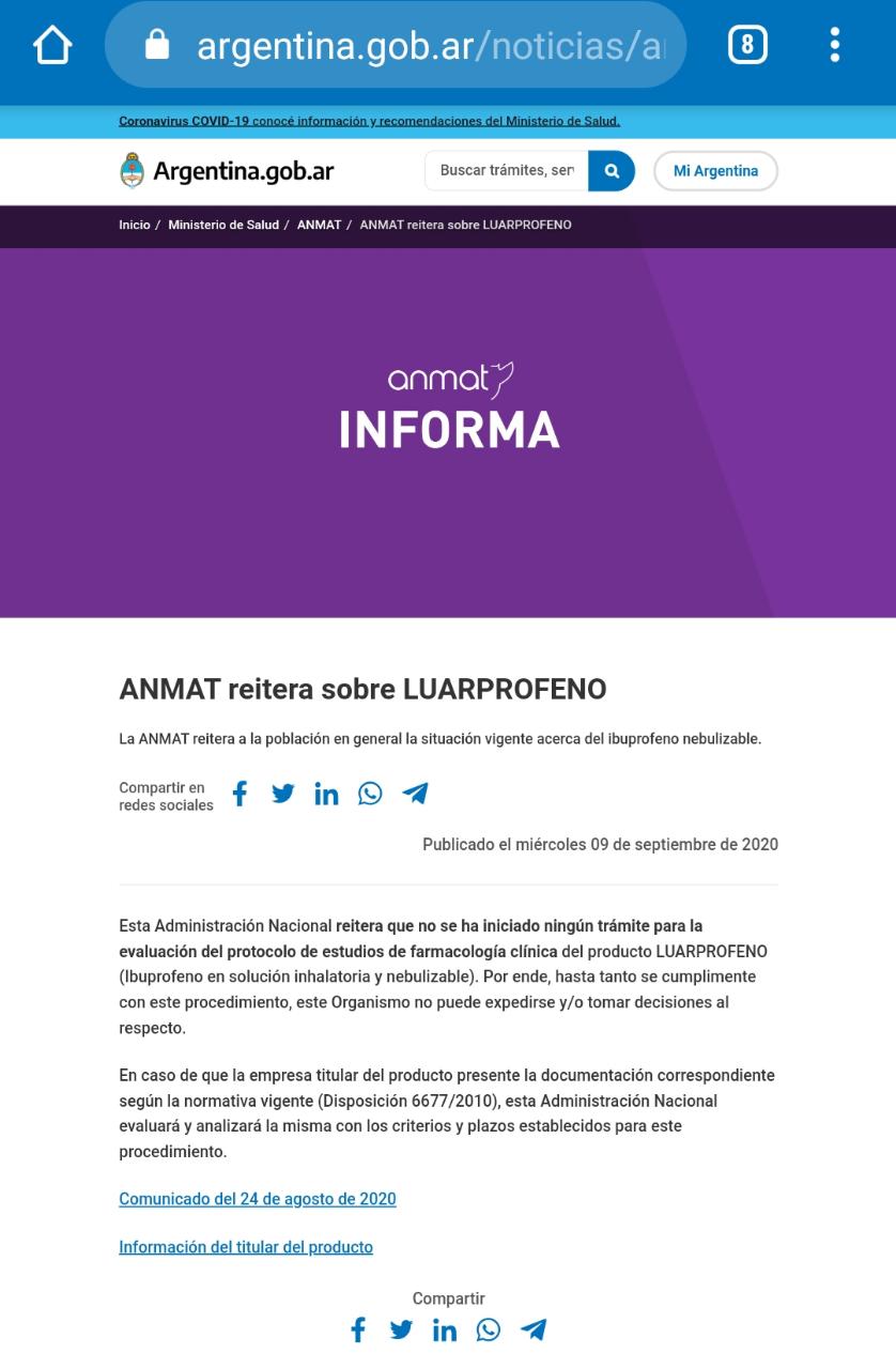 ANMAT reitera sobre LUARPROFENO. Química Luar. Fundamentos