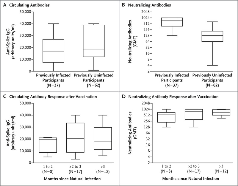 En los trabajadores de la salud completamente vacunados, la aparición de infecciones irruptivas por SARS-CoV-2 se correlacionó con títulos más bajos de anticuerpos neutralizantes durante el período peri-infección. La mayoría de las infecciones fueron leves o asintomáticas, aunque algunas presentaron síntomas persistentes. New England Journal of Medicine, 28 de julio de 2021.