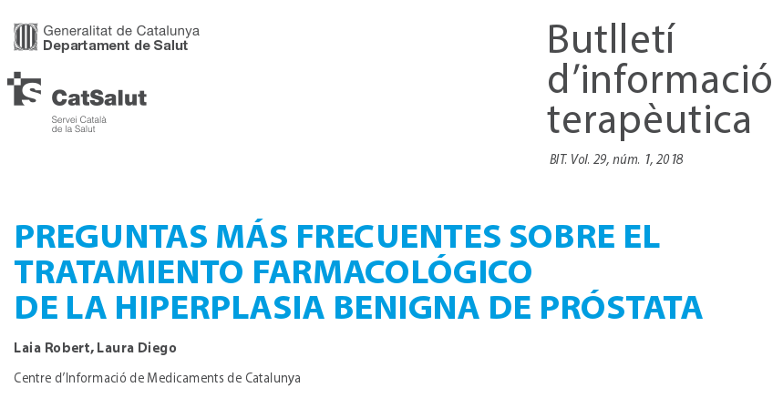 Butlletí d’informació terapèutica (BIT). Vol. 29, núm. 1, 2018 Departament de Salut , Catalunya, marzo de 2018 El objetivo de este Boletín es revisar el tratamiento de la HBP y resolver algunas dudas frecuentes que habitualmente genera el tratamiento farmacológico.