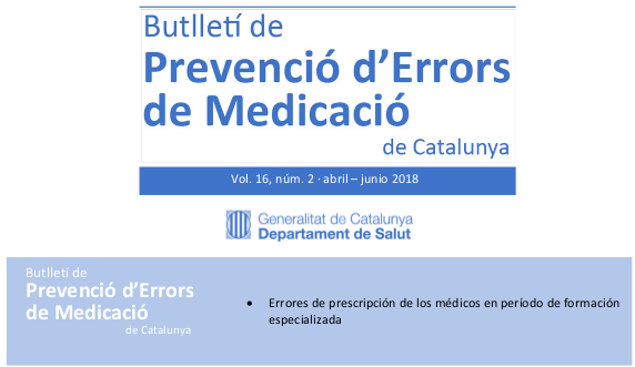 Butlletí de Prevenció d’Errors de Medicació de Catalunya, Vol. 16, núm. 2 · abril – junio 2018 Catsalut, diciembre de 2018 los errores de prescripción se identifican como una parte significativa de los errores de medicación (EM) y una de las causas potenciales de daño a los pacientes. Dentro del concepto de «error de la prescripción in se incluyen aspectos como la prescripción irracional, inapropiada, la infraprescripción y la sobreprescripción