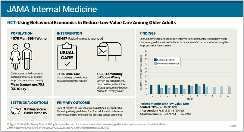 Uso de la economía del comportamiento para reducir la atención de bajo valor entre los adultos mayores. Ensayo clínico aleatorizado
