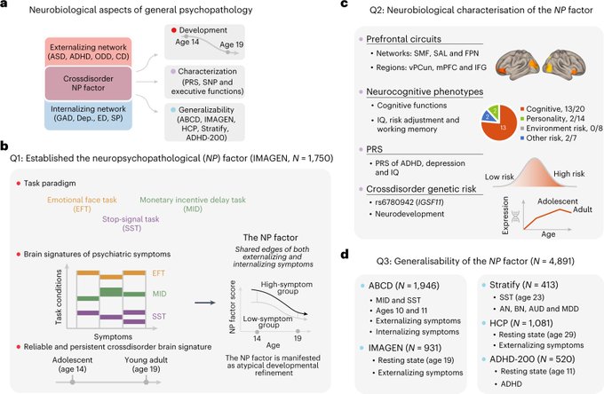 identificamos una base neural general y reproducible que subyace a los síntomas de múltiples trastornos de salud mental, uniendo evidencia multidimensional de sustratos conductuales, de neuroimagen y genéticos. Estos hallazgos pueden ayudar a desarrollar nuevas intervenciones terapéuticas para las comorbilidades psiquiátricas. Nature Medicine, 24 de abril de 2023
