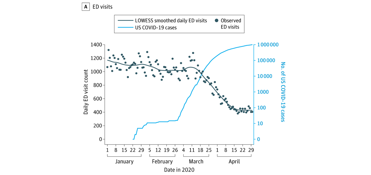 A medida que la infección se extendía en los EEUU se registró un descenso a la mitad de las consultas a Emergencias, seguido de un aumento gradual de internaciones. Es necesario asegurar la consulta y resolución oportuna de las urgencias para evitar más consecuencias inidirectas de la pandemia. JAMA Internal Medicine, 3 de agosto de 2020.