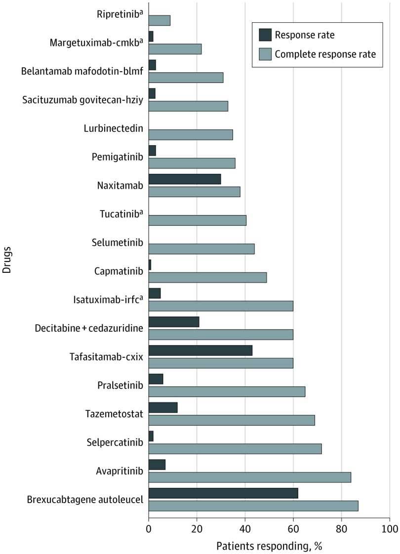 La FDA aprobó más nuevas entidades moleculares (NEM) para el cáncer en 2020 que en 2019. Sin embargo, la mayoría de las NEM aprobadas se basaron en criterios de valoración sustitutos con efectos inciertos sobre la supervivencia y la calidad de vida.5 La mayoría de las aprobaciones se basaron en ensayos clínicos no controlados de un solo brazo y requerirán pruebas de eficacia posteriores a la comercialización. JAMA Netw Open, 28 de mayo de 2021