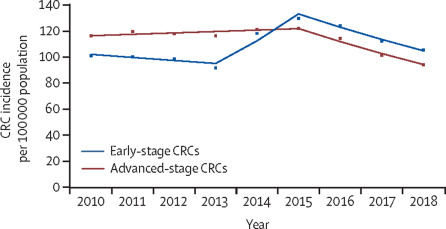 Después de la introducción del programa nacional de detección, se observó una disminución en la incidencia de cáncer colorrectal (CCR) general y en estadio avanzado. En vista de esta observación, junto con el cambio observado hacia la mayor detección y en etapas más tempranas del CCR por cribado que se tratan mediante escisión local, podríamos concluir con cautela que, a largo plazo, el cribado mediante pruebas inmunoquímicas fecales podría reducir la morbilidad y la mortalidad relacionadas con el CCR. Lancet Gastroenterol Hepatol 22 de noviembre de 2021