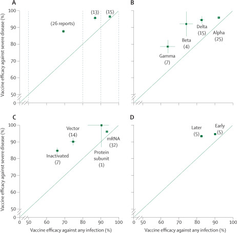 Las consideraciones sobre eficacia y efectividad se basan en estudios que miden la prevención de la infección por COVID-19 leve a moderada; no se diseñaron para concluir sobre la prevención de la hospitalización, enfermedades graves o la muerte, o sobre la prevención de la infección y el potencial de transmisión. La evaluación de la idoneidad de las vacunas debe considerar todos los indicadores e involucrar la seguridad, la implementación, disponibilidad y costos. Lancet, 20 de abril de 2021
