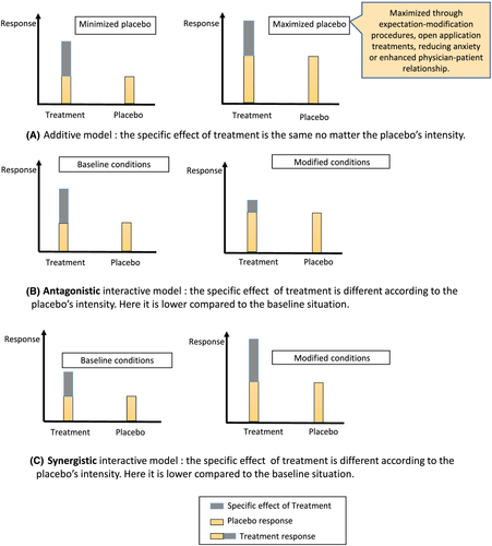 La evidencia de aditividad entre el placebo y las características específicas de los tratamientos fue poco frecuente en los estudios incluidos. Sugerimos que las intervenciones para las dolencias sensibles al placebo se prueben en ensayos diseñados para tomar en serio las interacciones una vez que los ensayos clínicos exploratorios hayan demostrado su eficacia con suficiente validez interna. Br J Clin Pharmacol, 5 de abril de 2022, corregido 4 de agosto de 2022