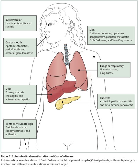 La identificación de los hallazgos característicos en la ileocolonoscopia y la histología sigue siendo el estándar de oro del diagnóstico, pero la evaluación completa implica anomalías de laboratorio, incluidas deficiencias de micronutrientes, imágenes transversales para identificar la extensión, gravedad y complicaciones de la enfermedad transmural, y una evaluación psicosocial.. Lancet, 1 de marzo de 2024