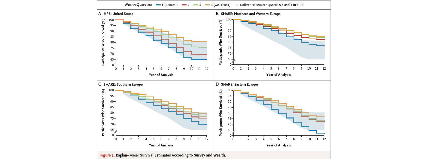 En estudios de cohorte realizados en Estados Unidos y Europa, una mayor riqueza se asoció con una menor mortalidad, y la asociación entre riqueza y mortalidad pareció ser más pronunciada en Estados Unidos que en Europa. New England Journal of Medicine, 2 de abril de 2025.