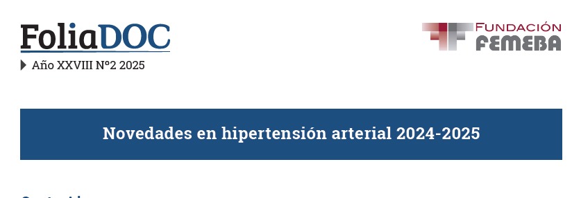 Este número de la FoliaDoc repasará las actualizaciones en el diagnóstico, evaluación y tratamiento de la hipertensión arterial. Se revisarán las últimas versiones de las guías de práctica clínica, tomando como referencia principal la Guía de Práctica Clínica Nacional sobre Hipertensión Arterial (GPCN-HTA), actualizada a 2024, con los aportes adicionales del Consenso Argentino de Hipertensión Arterial (CA-HTA 2025) y de las guías europea (ESC 2024) y estadounidense (ACC/AHA 2025). Folia DOC, Fundación Femeba, enero de 2026