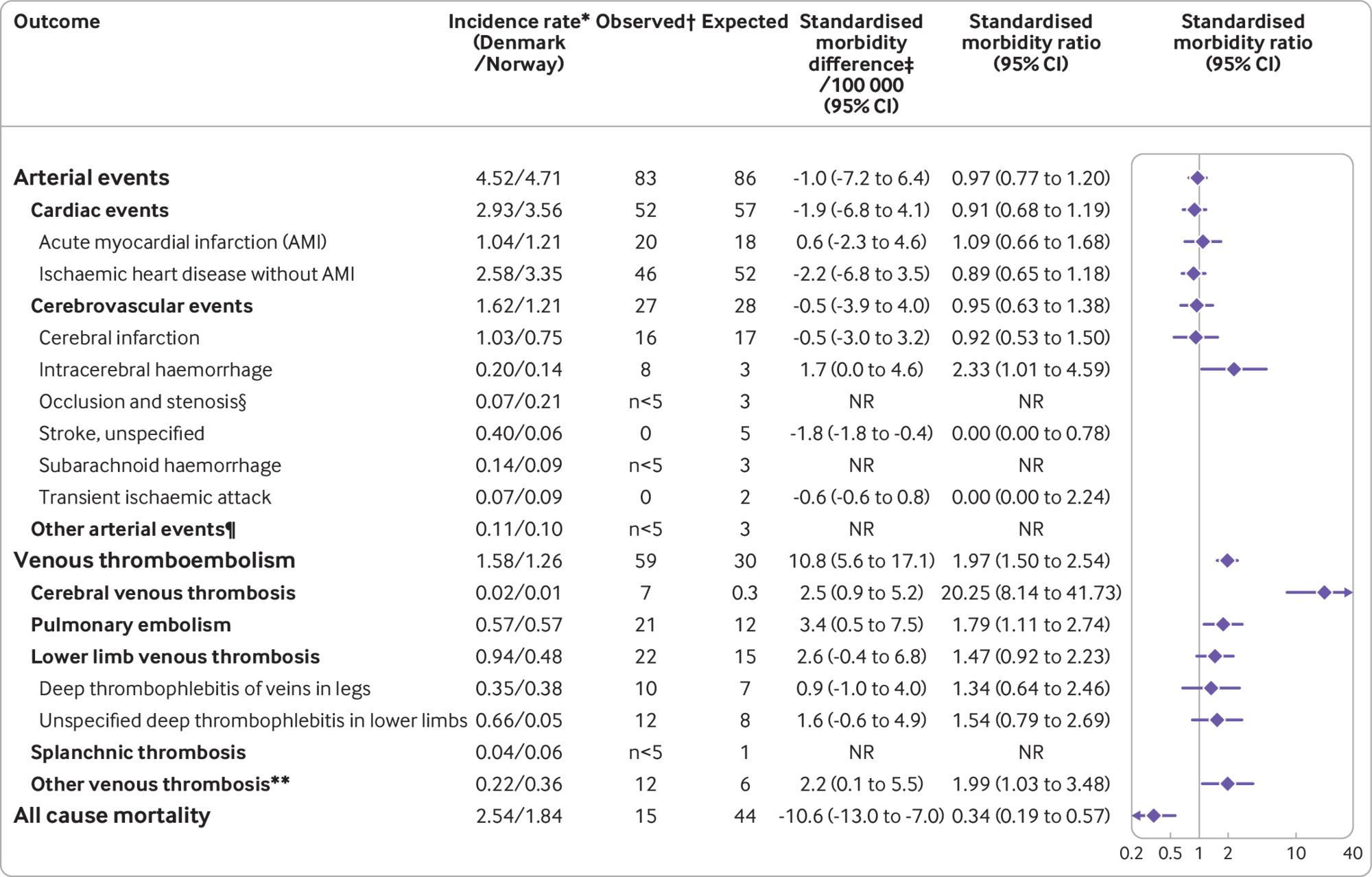 Eventos arteriales, tromboembolismo venoso, trombocitopenia y hemorragia después de la vacunación tras la vacunación con Oxford-AstraZeneca en Dinamarca y Noruega