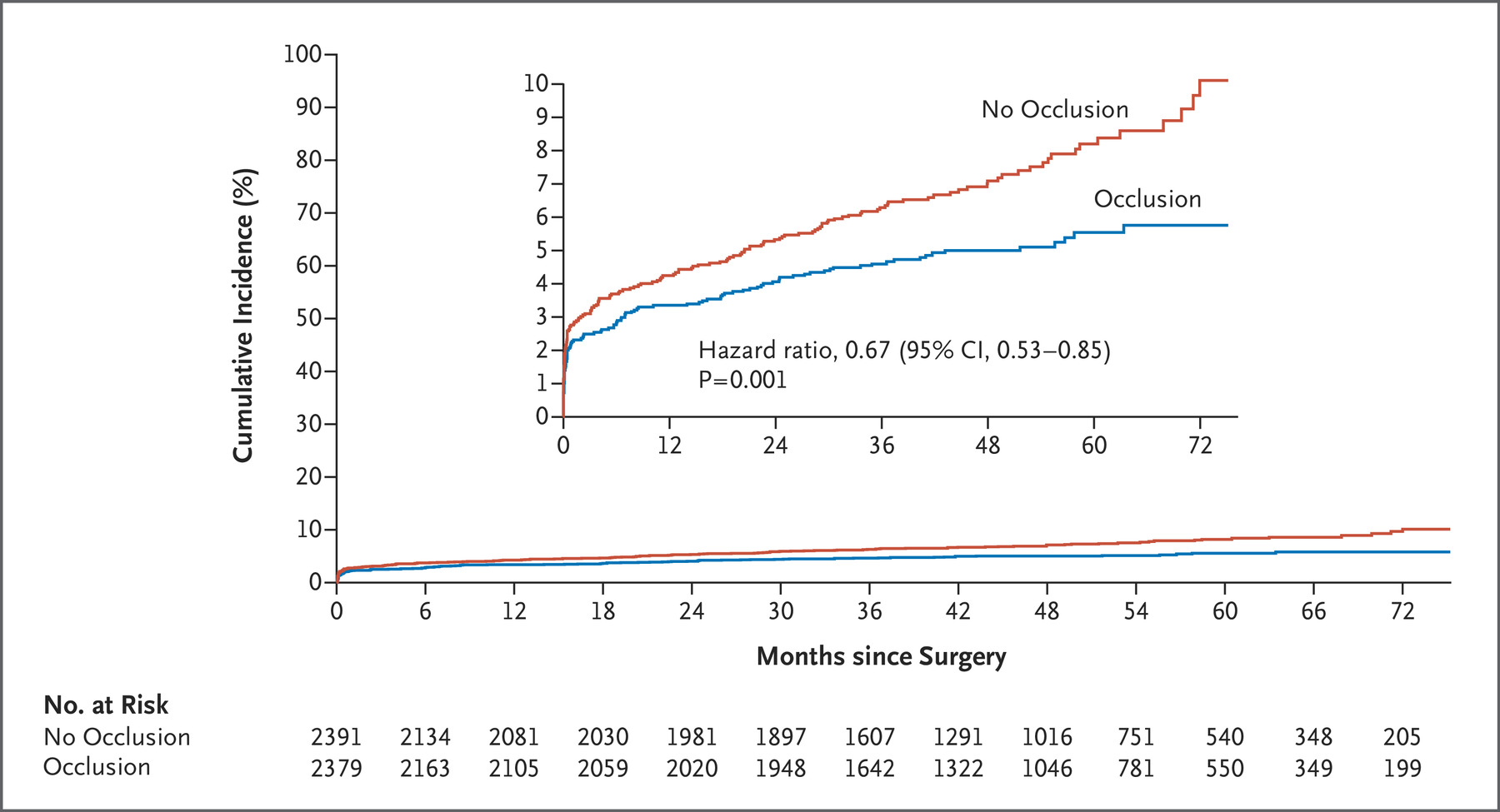 El cierre quirúrgico de la orejuela durante una cirugía cardíaca por otra indicación redujo en un 33% el riesgo de complicación tromboembólica, en pacientes con fibrilación auricular crónica. New England Journal of Medicine, 15 de mayo de 2021.