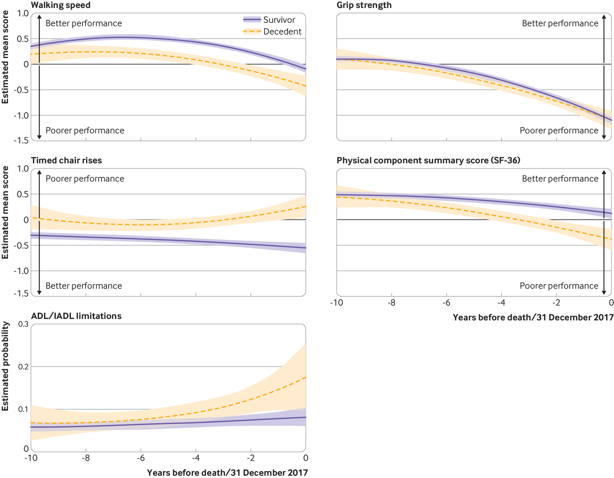 Declinación terminal en las medidas objetivas y autoinformadas de la función motora antes de la muerte