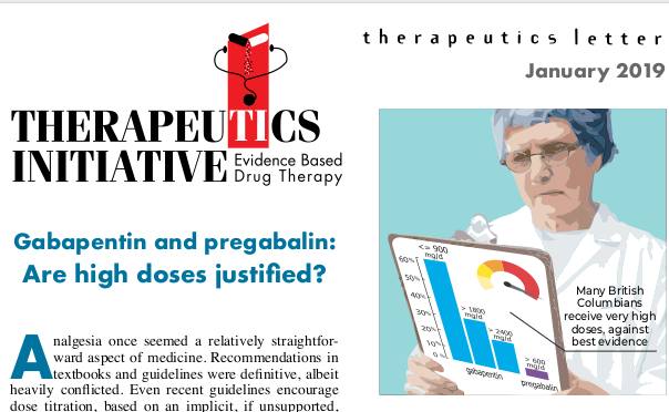 Therapeutics Letter # 117, 19 de febrero de 2019 La mayoría de los pacientes no se beneficiarán con la gabapentina o la pregabalina para el dolor. No se debe esperar un mayorr alivio del dolor con altas dosis. En cualquier dosis, se debe evaluar el beneficio o daño dentro de 1-2 semanas; reevaluar con frecuencia para la reducir la dosis o la deprescripción. Los efectos adversos aumentan a dosis más altas.
