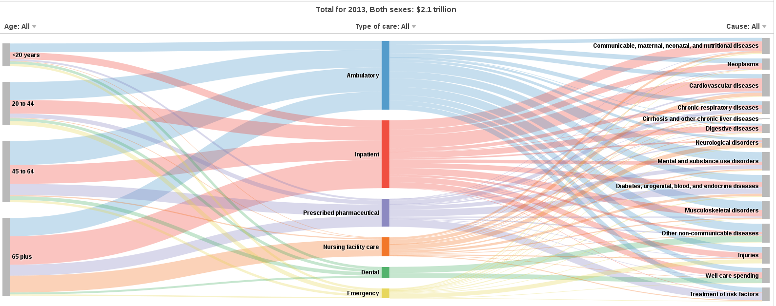 Gasto de los Estados Unidos en atención de salud personal y salud pública, 1996-2013