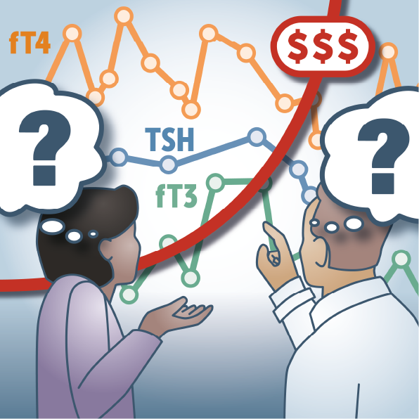 Este Therapeutics Letter enfatiza un enfoque centrado en la TSH para el diagnóstico y el tratamiento del hipotiroidismo primario (disfunción tiroidea) en adultos. La detección sistemática con pruebas de función tiroidea no es necesaria en pacientes adultos asintomáticos.Si se sospecha disfunción tiroidea, los médicos generalmente deben comenzar las pruebas diagnósticas con una prueba de hormona estimulante de la tiroides (TSH) únicamente .Utilice la TSH sola para monitorizar el tratamiento en personas que toman levotiroxina en monoterapia para el hipotiroidismo primario. Una vez que la TSH se encuentre dentro del rango normal para la edad, se recomienda realizar controles anuales si no se observan cambios clínico. Therapeutics Letter, 22 de abril de 2025
