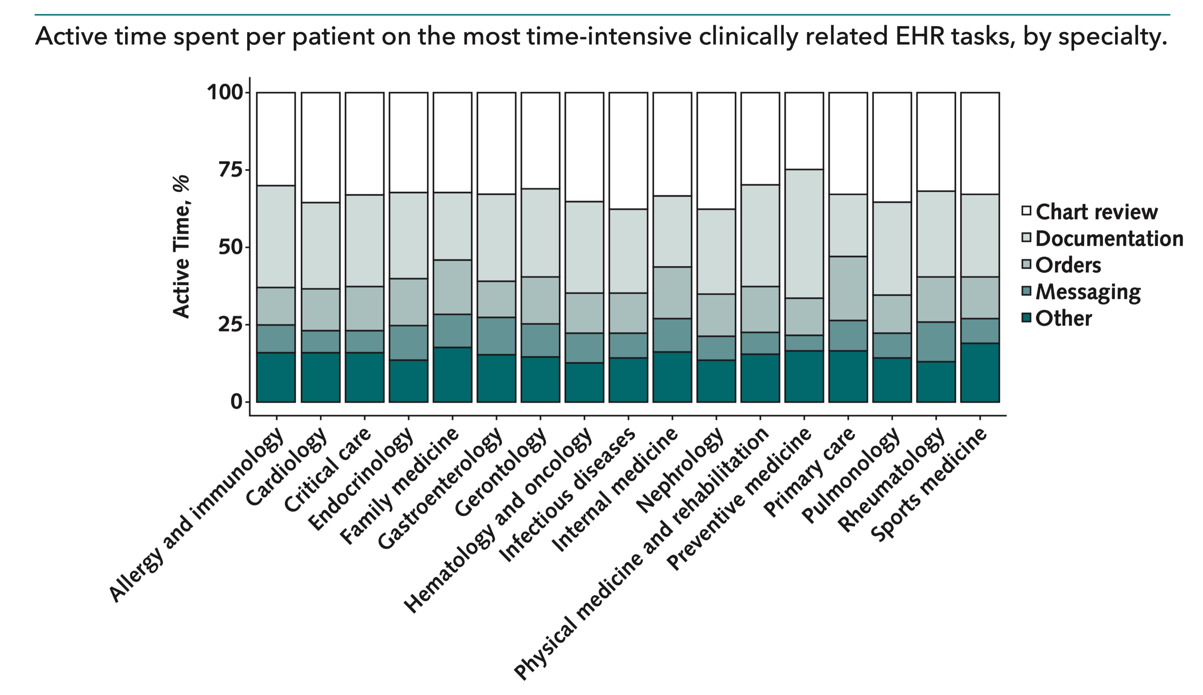 El tiempo dedicado al uso de HCE para apoyar la prestación de atención constituye una gran parte del día de los médicos, y una amplia variación sugiere oportunidades para optimizar los sistemas y procesos Ann Intern Med. 14 de enero de 2020