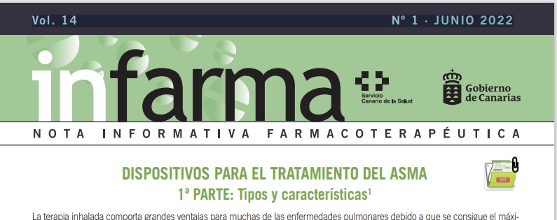 es necesario dar a conocer los tipos de dispositivos disponibles en terapia inhalada a fin de que los profesionales sanitarios puedan instruir adecuadamente al paciente/cuidador en la técnica de utilización. Infarma, Servicio Canario de la Salud, 7 de agosto de 2022