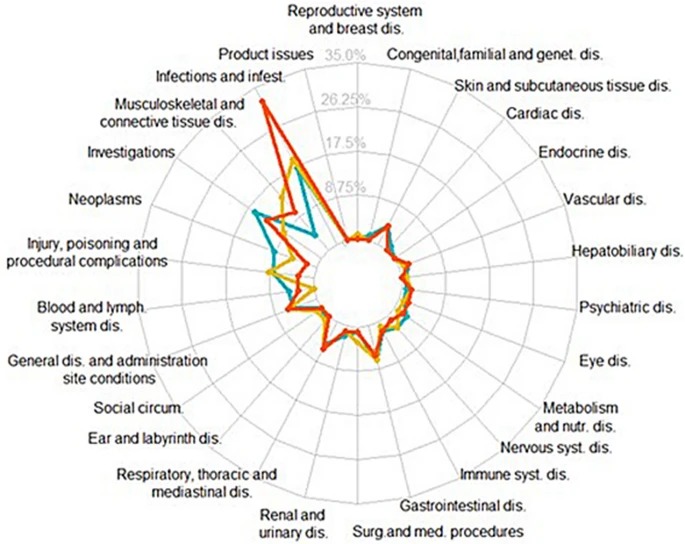 Eventos adversos asociados con los inhibidores de JAK en 126 815 informes de la base de datos de farmacovigilancia de la OMS