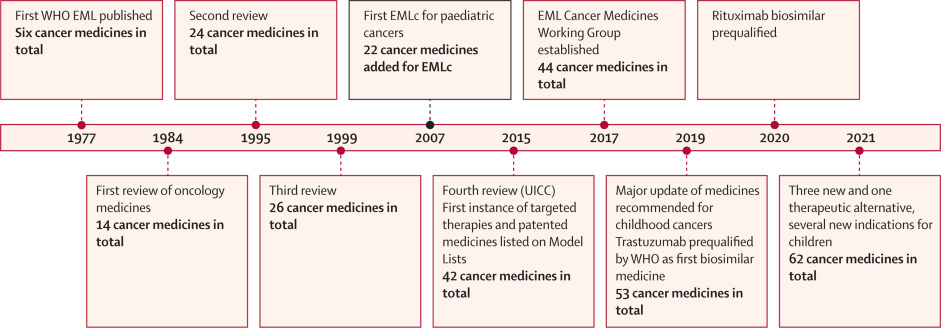 Este documento de política de salud describe cómo se enumeran los medicamentos contra el cáncer en la EML y la EMLc, incluidos dos procesos actualizados de la OMS: (1) la formación del Grupo de trabajo sobre medicamentos contra el cáncer y (2) principios de selección adicionales para recomendar medicamentos contra el cáncer, incluido un beneficio mínimo de supervivencia general de 4 a 6 meses con una mejora en la calidad de vida en comparación con el tratamiento estándar. Lancet Glob Health, 29 de septiembre de 2022