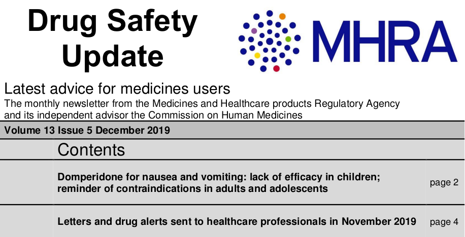 MHRA, 16 diciembre 2019 Domperidona ya no está autorizado en el Reino Unido para su uso en niños menores de 12 años o aquellos que pesen menos de 35 kg. Los resultados de un estudio controlado con placebo en niños menores de 12 años con gastroenteritis aguda no mostraron ninguna diferencia en la eficacia para aliviar las náuseas y los vómitos en comparación con el placebo.
