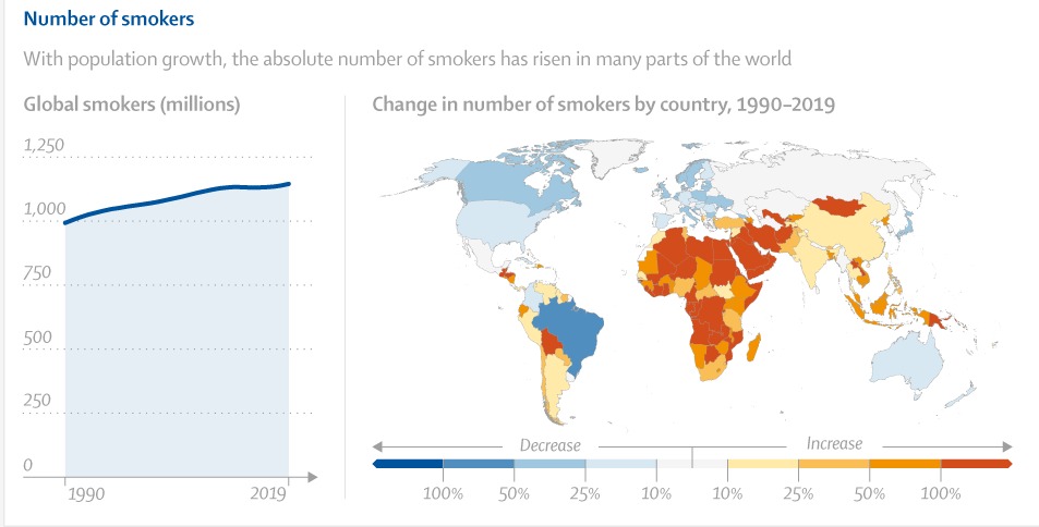 Patrones en la prevalencia del consumo de tabaco y carga de morbilidad atribuible en 204 países, 1990-2019