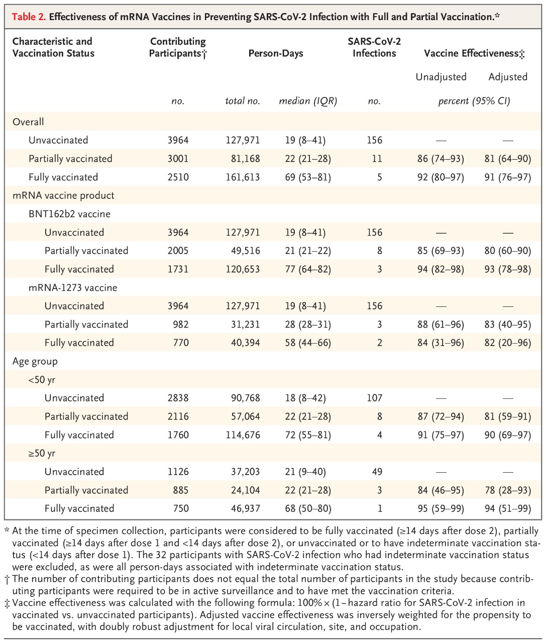 Las vacunas de ARNm autorizadas fueron altamente efectivas entre los adultos en edad laboral para prevenir la infección por SARS-CoV-2 cuando se administraron en condiciones del mundo real, y las vacunas atenuaron la carga de ARN viral, el riesgo de síntomas febriles y la duración de la enfermedad entre los que presentaban el avance. Infección a pesar de la vacunación. N Engl J Med, 30 de junio de 2021