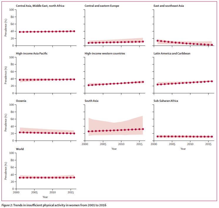 Tendencias mundiales de actividad física insuficiente de 2001 a 2016: un análisis agrupado de 358 encuestas basadas en la población con 1, 9 millones de participantes