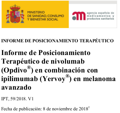 Informe de posicionamiento terapéutico de nivolumab (Opdivo®) en combinación con ipilimumab (Yervoy®) en melanoma avanzado