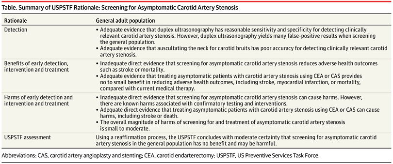 Detección de estenosis asintomática de la arteria carótida Declaración de recomendación del Grupo de Trabajo de Servicios Preventivos de EE. UU. (USPSTF)