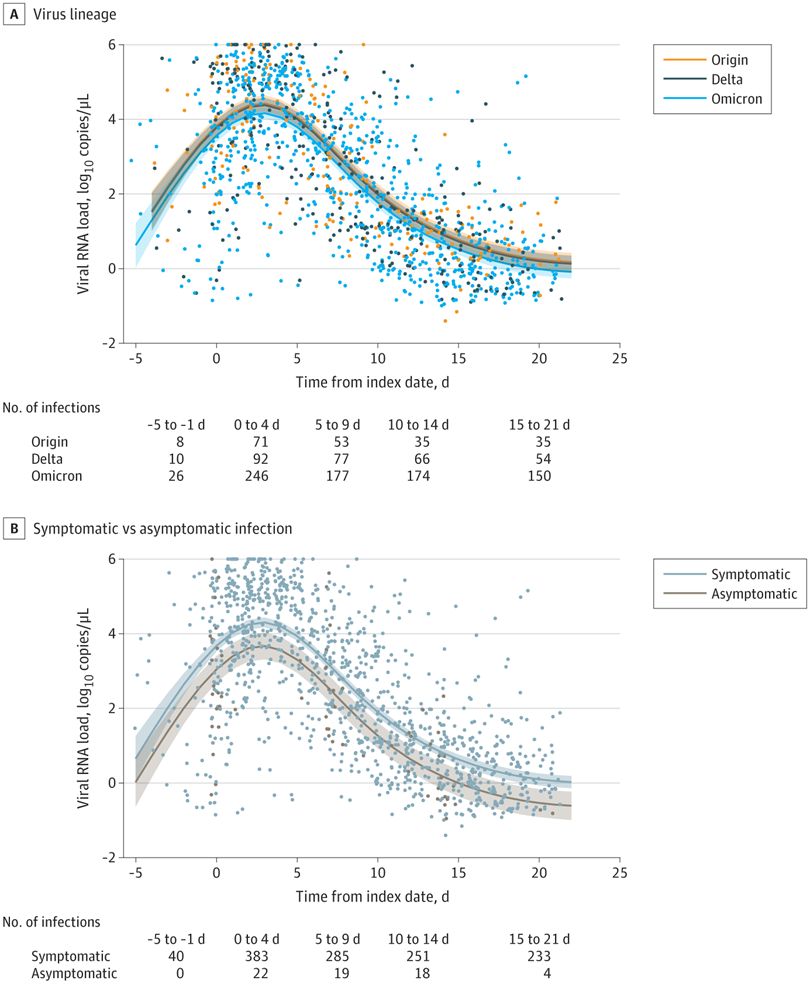 En una cohorte de trabajadores esenciales y de primera línea de EE. UU. con infecciones por SARS-CoV-2, la vacunación reciente con 2 o 3 dosis de vacuna de ARNm menos de 150 días antes de la infección con variantes Delta u Omicron, en comparación con no vacunarse, se asoció con atenuación síntomas, duración de la enfermedad, búsqueda de atención médica o carga viral para algunas comparaciones, aunque la precisión y la significación estadística de las estimaciones específicas variaron. JAMA. 18 de octubre de 2022