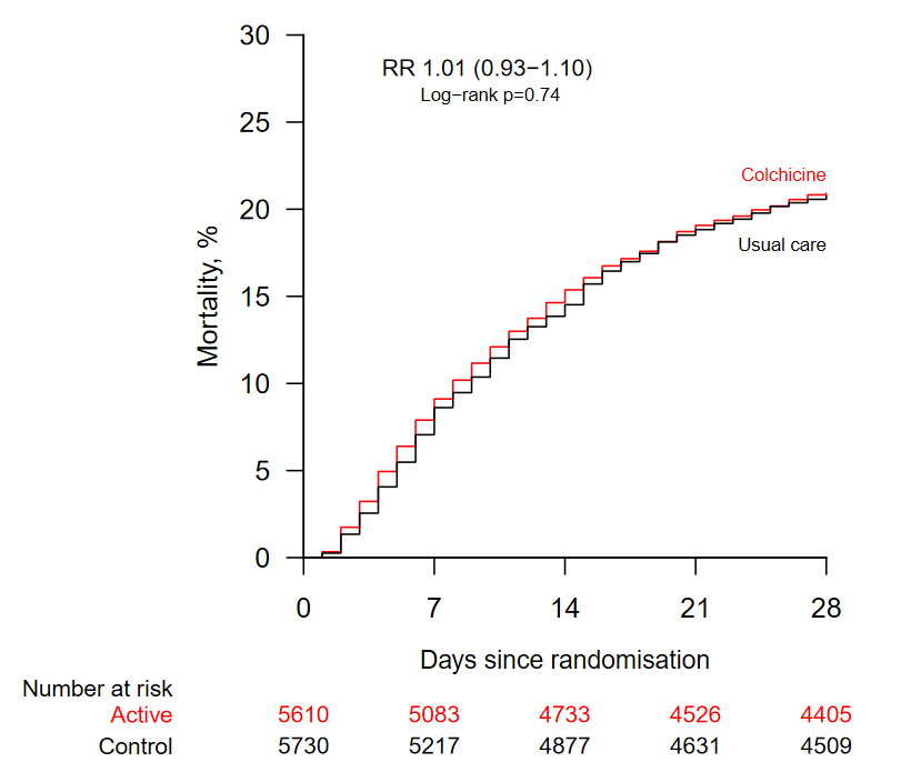 Colchicina en pacientes ingresados en el hospital con COVID-19 (RECOVERY): un ensayo aleatorizado, controlado, abierto y de plataforma