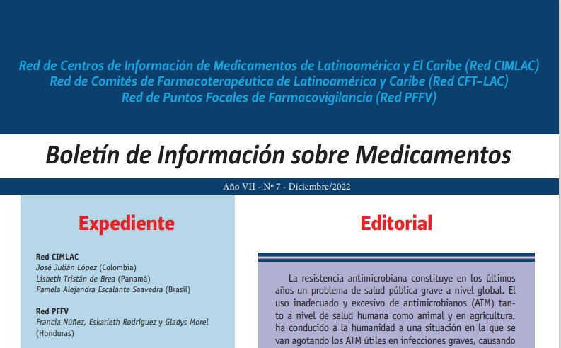 Red de Centros de Información de Medicamentos de Latinoamérica y El Caribe (Red CIMLAC), Red de Comités de Farmacoterapéutica de Latinoamérica y Caribe (Red CFT-LAC), Red de Puntos Focales de Farmacovigilancia (Red PFFV), diciembre de 2022.