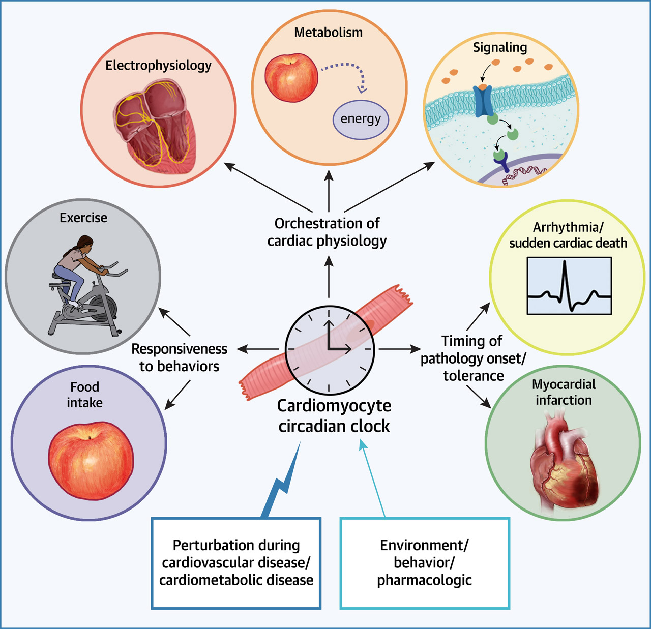 En este artículo, se detalla una revisión exhaustiva de nuestra comprensión actual del reloj circadiano de los cardiomiocitos durante la salud y la enfermedad. Estudios básicos, traslacionales y epidemiológicos sin precedentes respaldan la necesidad de implementar consideraciones cronobiológicas en las estrategias diseñadas tanto para la prevención como para el tratamiento de las enfermedades. J Am Coll Cardiol Basic Trans Science. 8 de diciembre de 2023