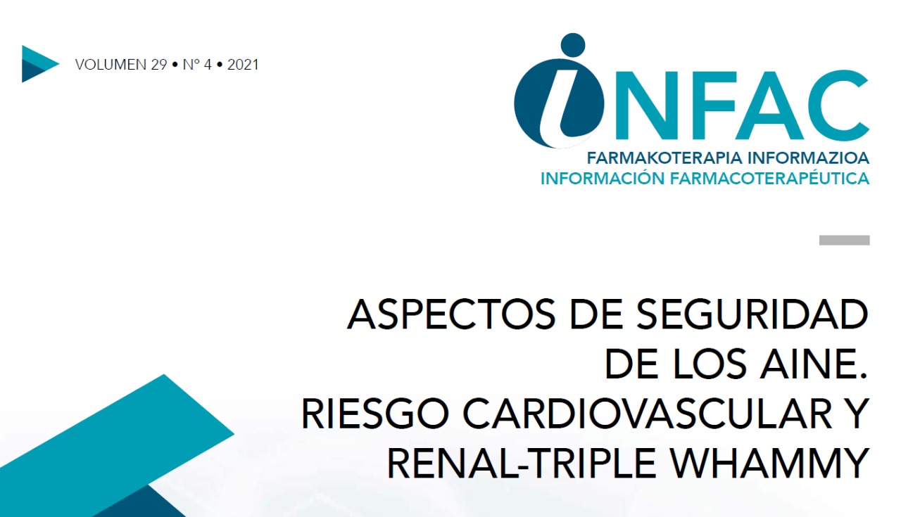 Los riesgos gastrointestinales y cardiovasculares de los AINE ya fueron revisados en un boletín INFAC en 2008 (Infac Vol 16, nº 4); en el presente boletín se pretende actualizar la información sobre la seguridad de los AINE, prestando especial atención a sus efectos a nivel cardiovascular y renal por interacción con otros fármacos, lo que se conoce como “Triple Whammy”. INFAC, Cevime, 11 de mayo de 2021