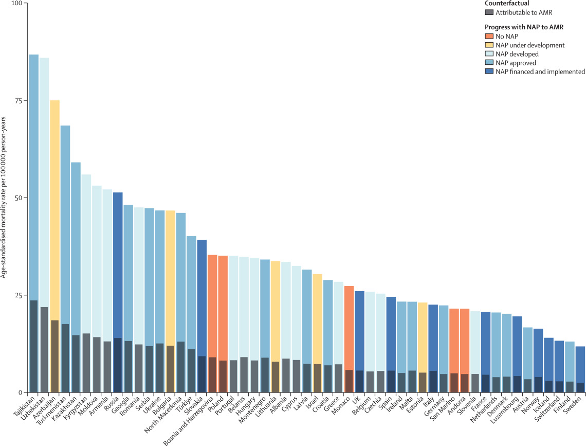 Los altos niveles de resistencia de varios patógenos bacterianos importantes y combinaciones de patógenos y fármacos, junto con las altas tasas de mortalidad asociadas con estos patógenos, muestran que la resistencia a los antimicrobianos (RAM) es una grave amenaza para la salud pública en la región europea de la OMS. Nuestros análisis regionales y entre países abren la puerta a estrategias que se pueden adaptar a las principales combinaciones de patógenos y fármacos y los recursos disponibles en un lugar específico. Estos resultados subrayan que la forma más eficaz de abordar la RAM en esta región requerirá esfuerzos e inversiones específicos junto con esfuerzos continuos de investigación basados en resultados. Lancet Public Health, 13 de octubre de 2022