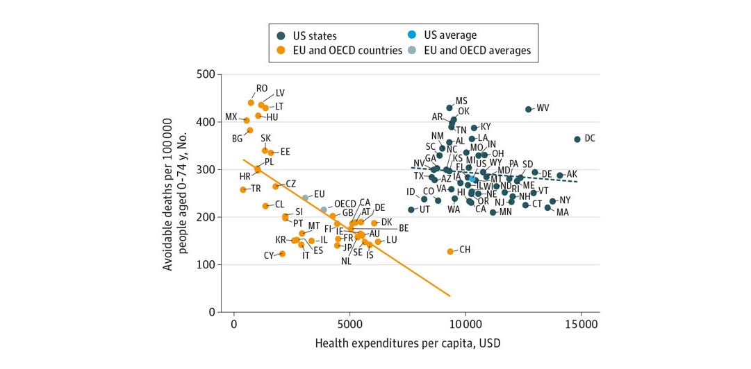 Mortalidad evitable y gasto en salud en los estados de EE. UU. comparados con otros países de altos ingresos